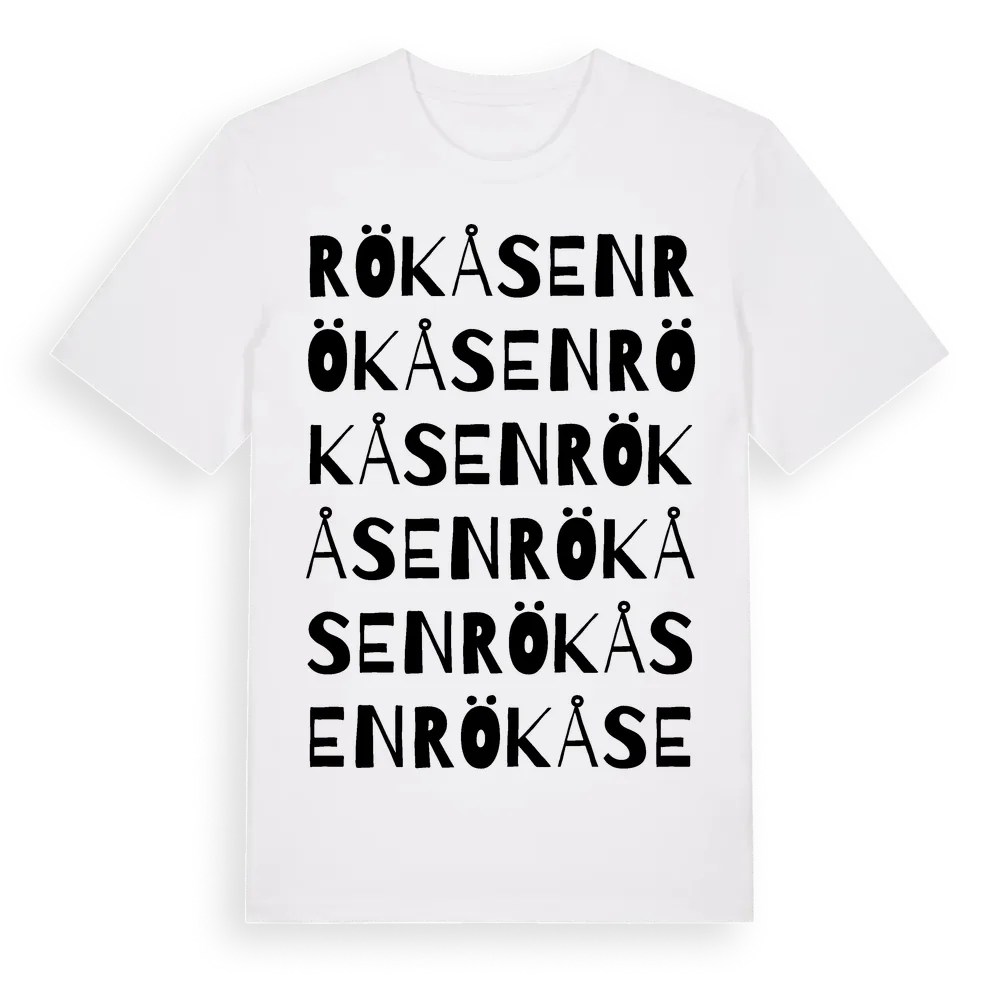 Rökåsen ordlek t-shirt är inspirerad av Rökåsen i Hallands län, Sverige. Tröjan är designad för dig som har en speciell koppling till platsen – oavsett om du bor här, har rötterna här eller bara älskar Rökåsen.