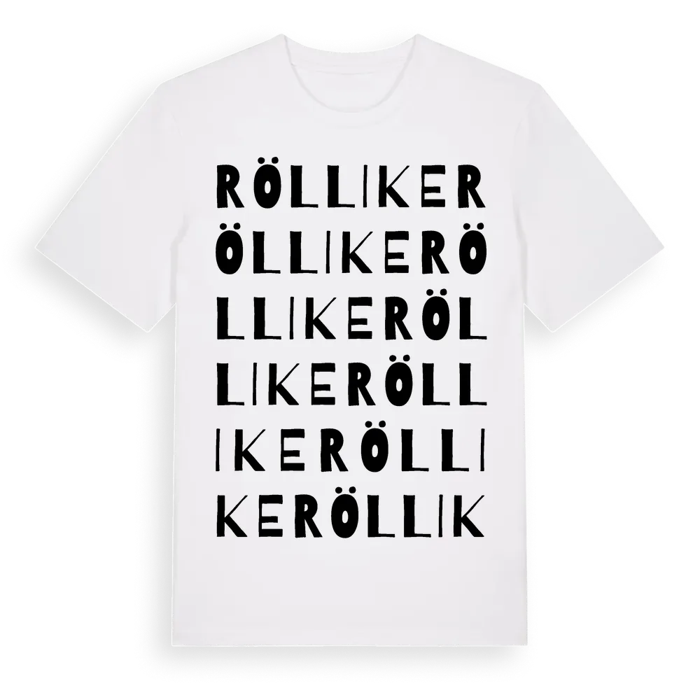 Röllike ordlek t-shirt är inspirerad av Röllike i Hallands län, Sverige. Tröjan är designad för dig som har en speciell koppling till platsen – oavsett om du bor här, har rötterna här eller bara älskar Röllike.