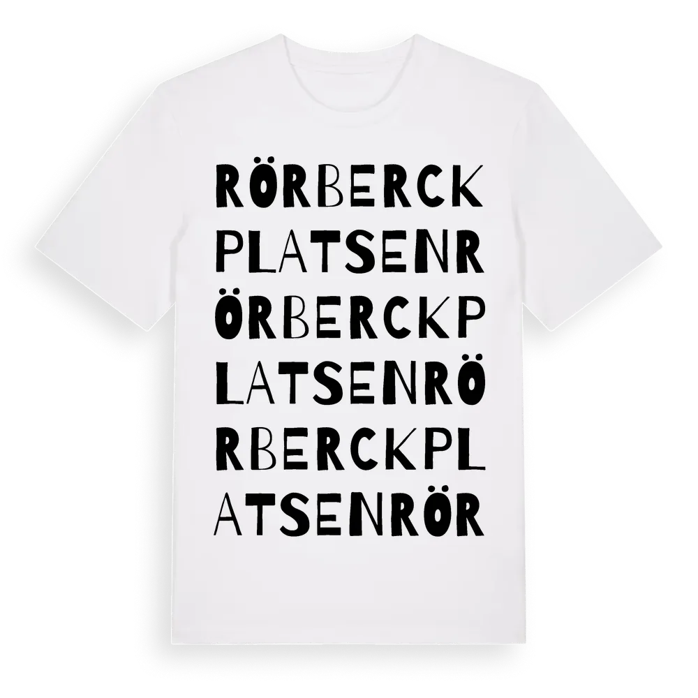 Rörberckplatsen ordlek t-shirt är inspirerad av Rörberckplatsen i Hallands län, Sverige. Tröjan är designad för dig som har en speciell koppling till platsen – oavsett om du bor här, har rötterna här eller bara älskar Rörberckplatsen.