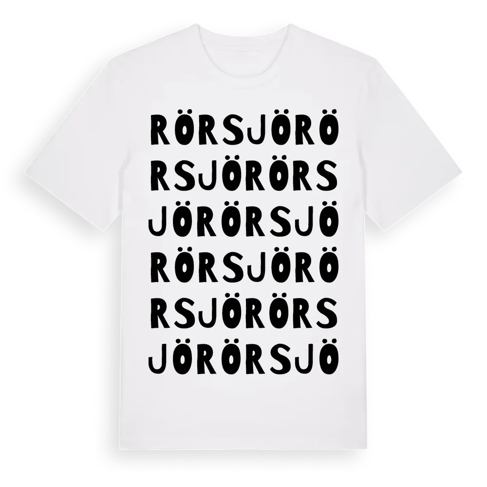 Rörsjö ordlek t-shirt är inspirerad av Rörsjö i Hallands län, Sverige. Tröjan är designad för dig som har en speciell koppling till platsen – oavsett om du bor här, har rötterna här eller bara älskar Rörsjö.
