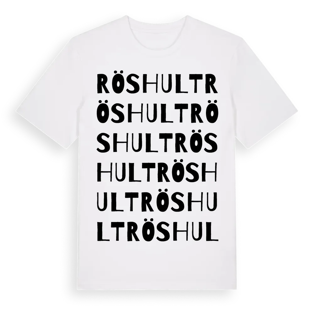 En ordlek byggd på Röshults namn. Subtilt och klurig – ett motiv som bara de som verkligen känner platsen fullt ut förstår. Premium bomull, unisex – från Röshult i Hallands län.