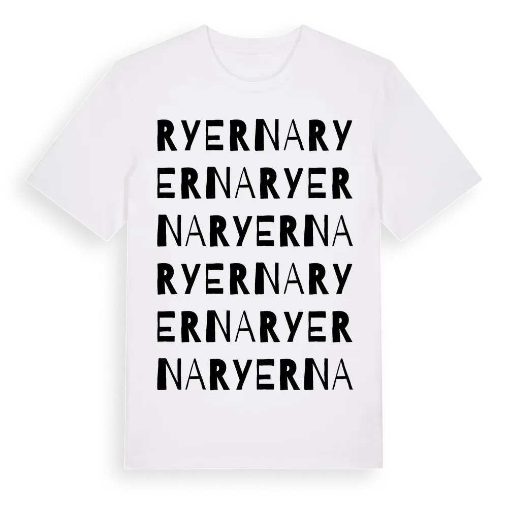Ryerna ordlek t-shirt är inspirerad av Ryerna i Hallands län, Sverige. Tröjan är designad för dig som har en speciell koppling till platsen – oavsett om du bor här, har rötterna här eller bara älskar Ryerna.