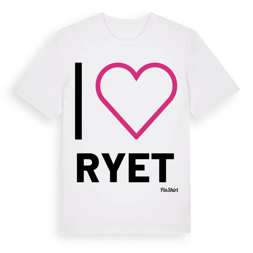 Det klassiska "I ❤ Ryet"-motivet i stort format som täcker hela bröstet. För dig som vill visa kärleken till Ryet på riktigt. Premium bomull, unisex – från Ryet i Hallands län.