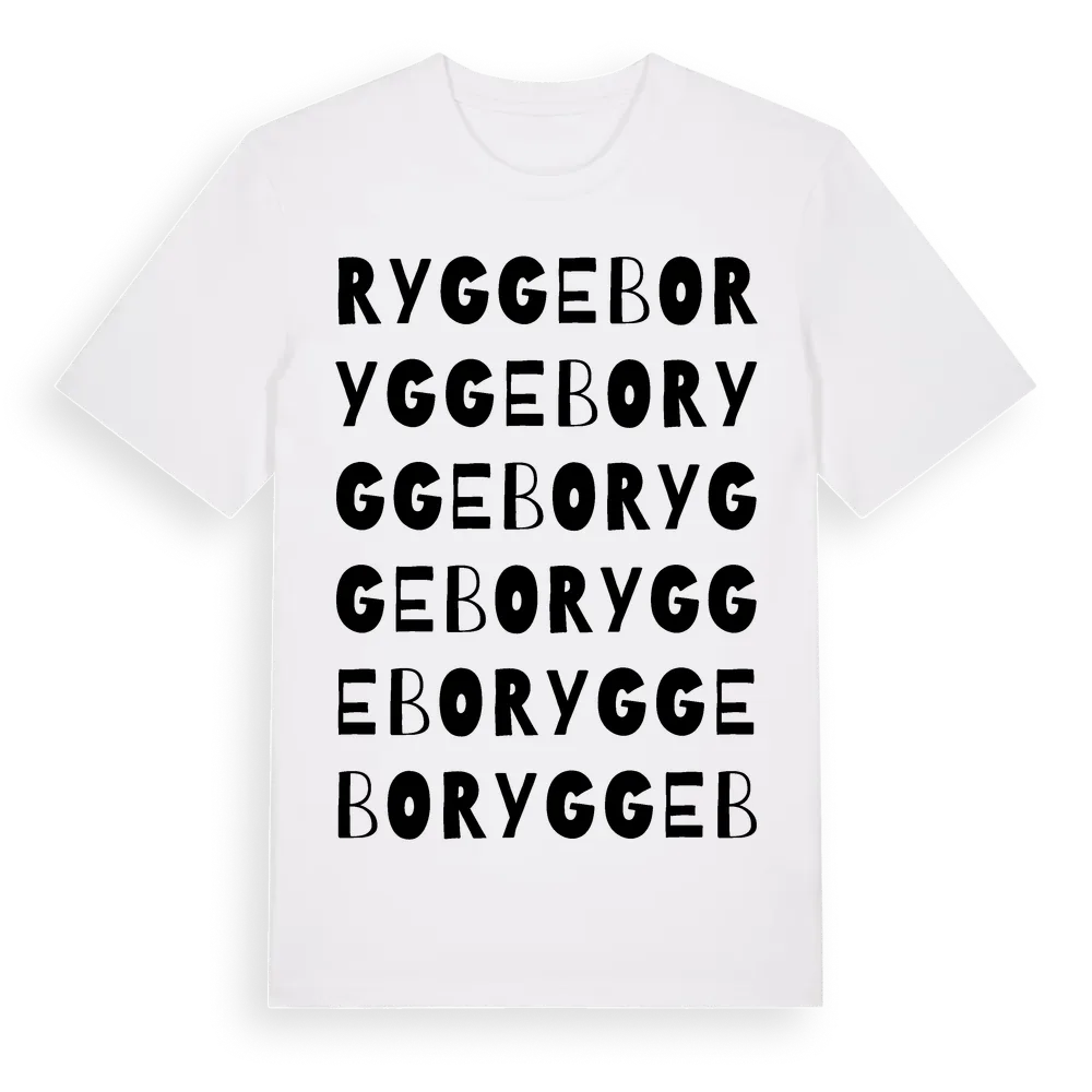 Ryggebo ordlek t-shirt är inspirerad av Ryggebo i Hallands län, Sverige. Tröjan är designad för dig som har en speciell koppling till platsen – oavsett om du bor här, har rötterna här eller bara älskar Ryggebo.