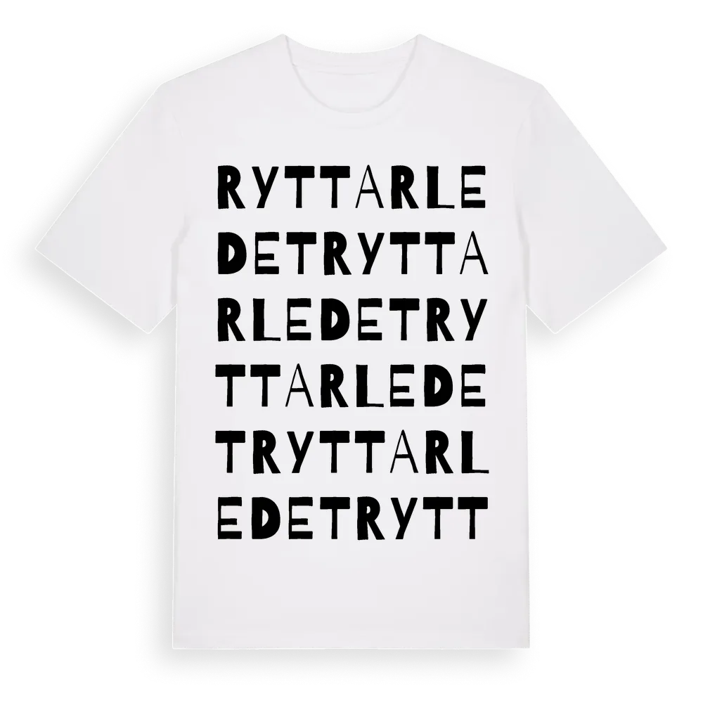 Ryttarledet ordlek t-shirt är inspirerad av Ryttarledet i Hallands län, Sverige. Tröjan är designad för dig som har en speciell koppling till platsen – oavsett om du bor här, har rötterna här eller bara älskar Ryttarledet.