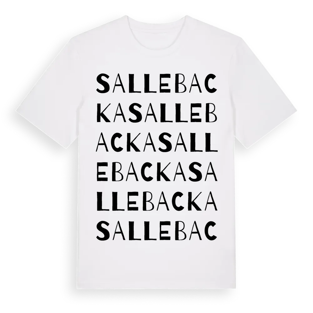 Sallebacka ordlek t-shirt är inspirerad av Sallebacka i Hallands län, Sverige. Tröjan är designad för dig som har en speciell koppling till platsen – oavsett om du bor här, har rötterna här eller bara älskar Sallebacka.