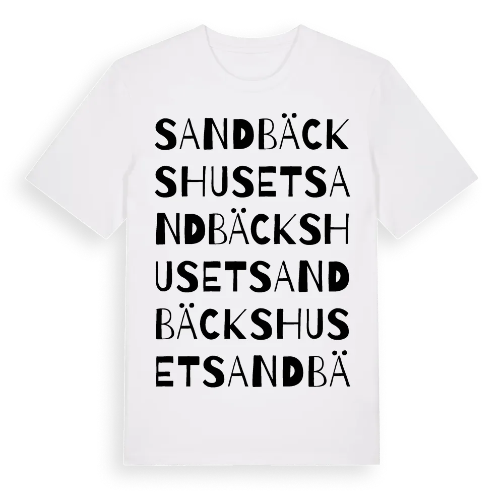 Sandbäckshuset ordlek t-shirt är inspirerad av Sandbäckshuset i Hallands län, Sverige. Tröjan är designad för dig som har en speciell koppling till platsen – oavsett om du bor här, har rötterna här eller bara älskar Sandbäckshuset.