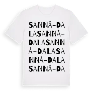 Sannå-Dala är en by i Hallands län, Sverige. Våra t-shirts med motiv från Sannå-Dala är designade för dig som har en speciell koppling till platsen – oavsett om du bor här, har rötterna här eller bara älskar Sannå-Dala.