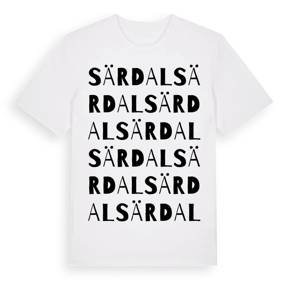 Särdal ordlek t-shirt är inspirerad av Särdal i Hallands län, Sverige. Tröjan är designad för dig som har en speciell koppling till platsen – oavsett om du bor här, har rötterna här eller bara älskar Särdal.