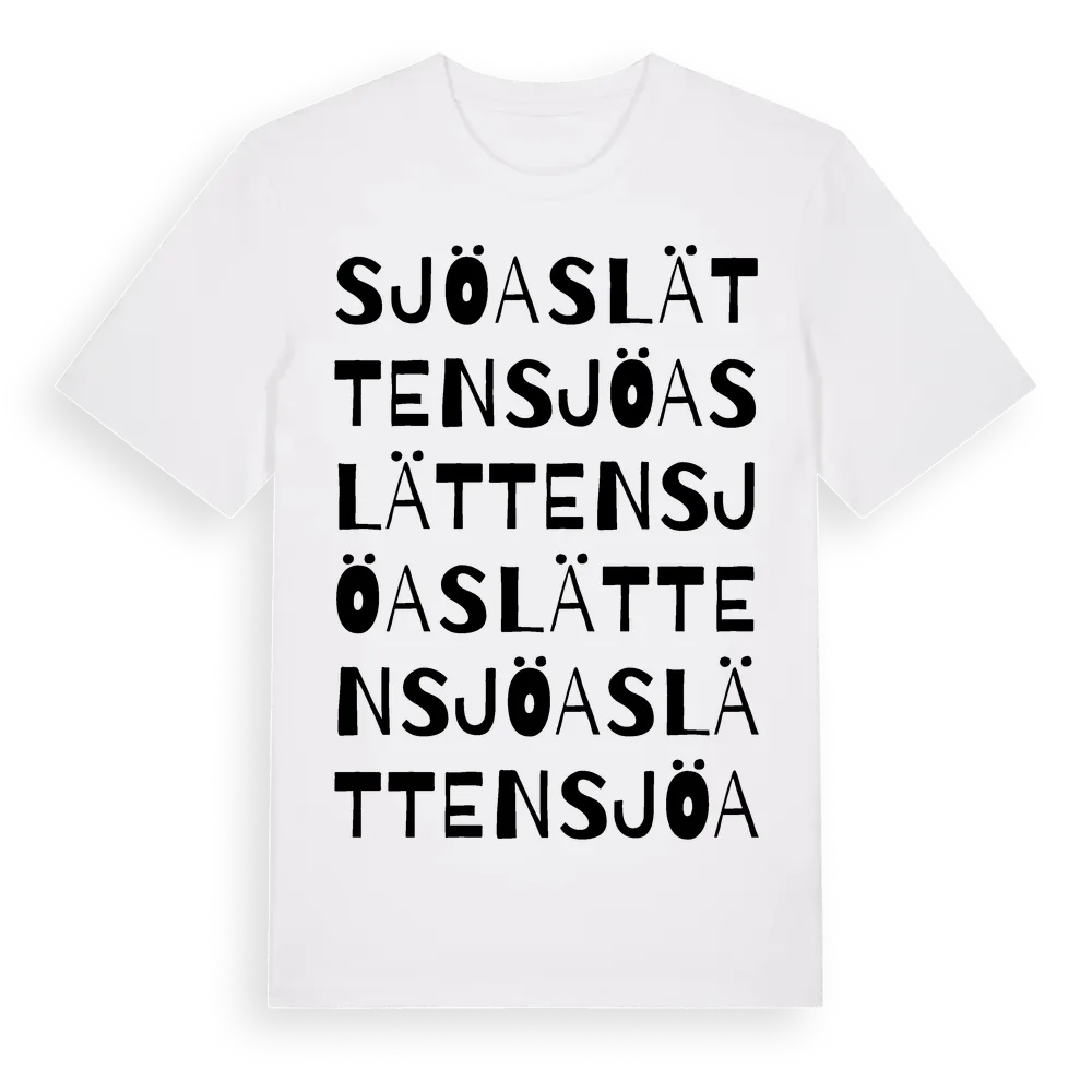Sjöaslätten ordlek t-shirt är inspirerad av Sjöaslätten i Hallands län, Sverige. Tröjan är designad för dig som har en speciell koppling till platsen – oavsett om du bor här, har rötterna här eller bara älskar Sjöaslätten.