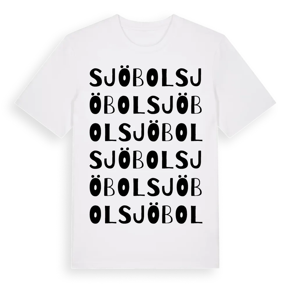 Sjöbol ordlek t-shirt är inspirerad av Sjöbol i Hallands län, Sverige. Tröjan är designad för dig som har en speciell koppling till platsen – oavsett om du bor här, har rötterna här eller bara älskar Sjöbol.