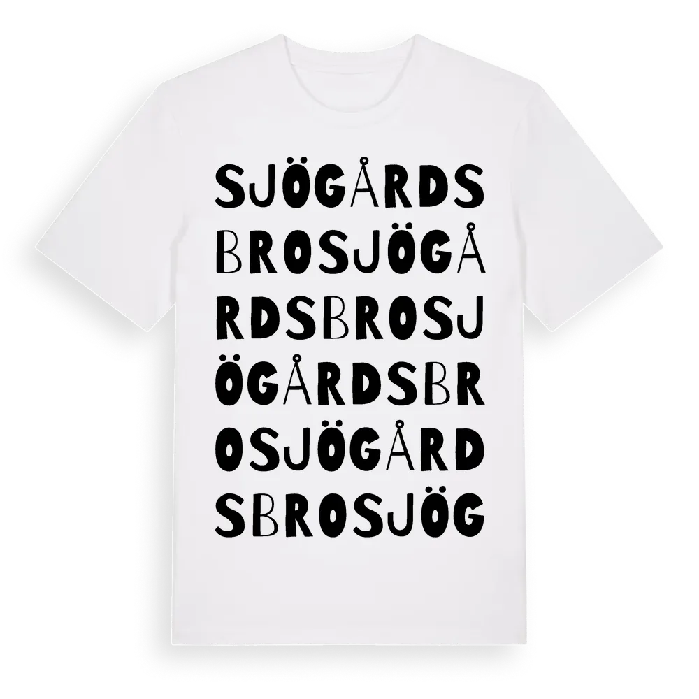 Sjögårdsbro ordlek t-shirt är inspirerad av Sjögårdsbro i Hallands län, Sverige. Tröjan är designad för dig som har en speciell koppling till platsen – oavsett om du bor här, har rötterna här eller bara älskar Sjögårdsbro.