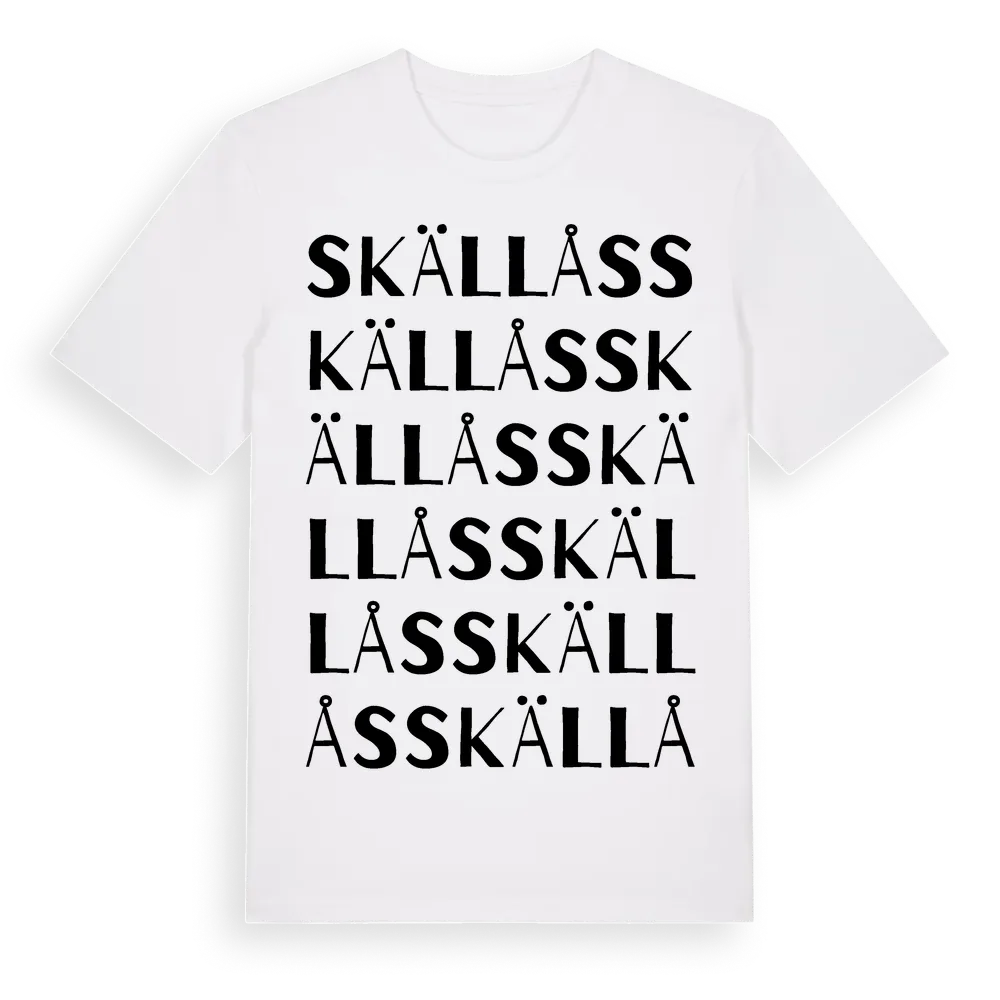 Skällås ordlek t-shirt är inspirerad av Skällås i Hallands län, Sverige. Tröjan är designad för dig som har en speciell koppling till platsen – oavsett om du bor här, har rötterna här eller bara älskar Skällås.