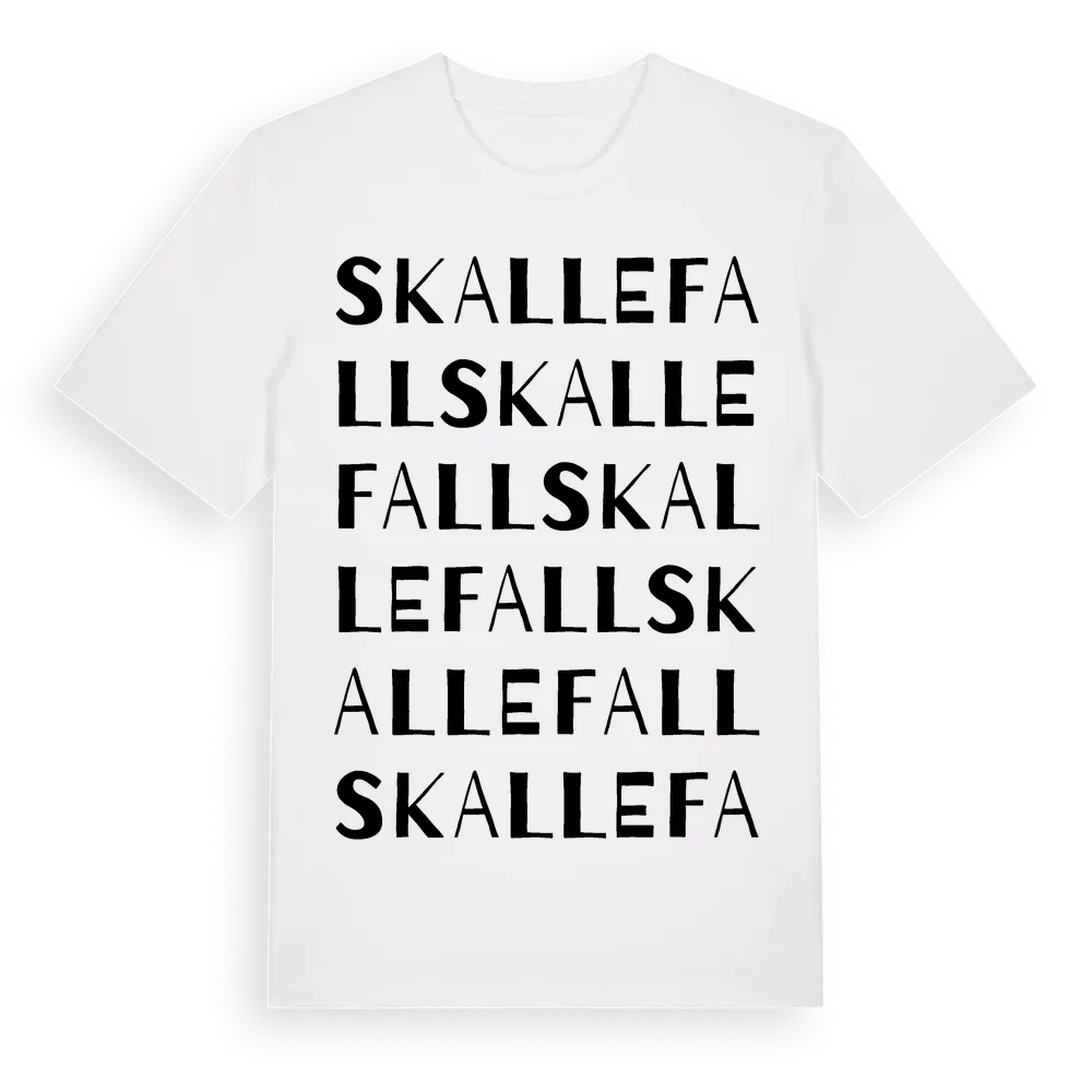 Skallefall ordlek t-shirt är inspirerad av Skallefall i Hallands län, Sverige. Tröjan är designad för dig som har en speciell koppling till platsen – oavsett om du bor här, har rötterna här eller bara älskar Skallefall.