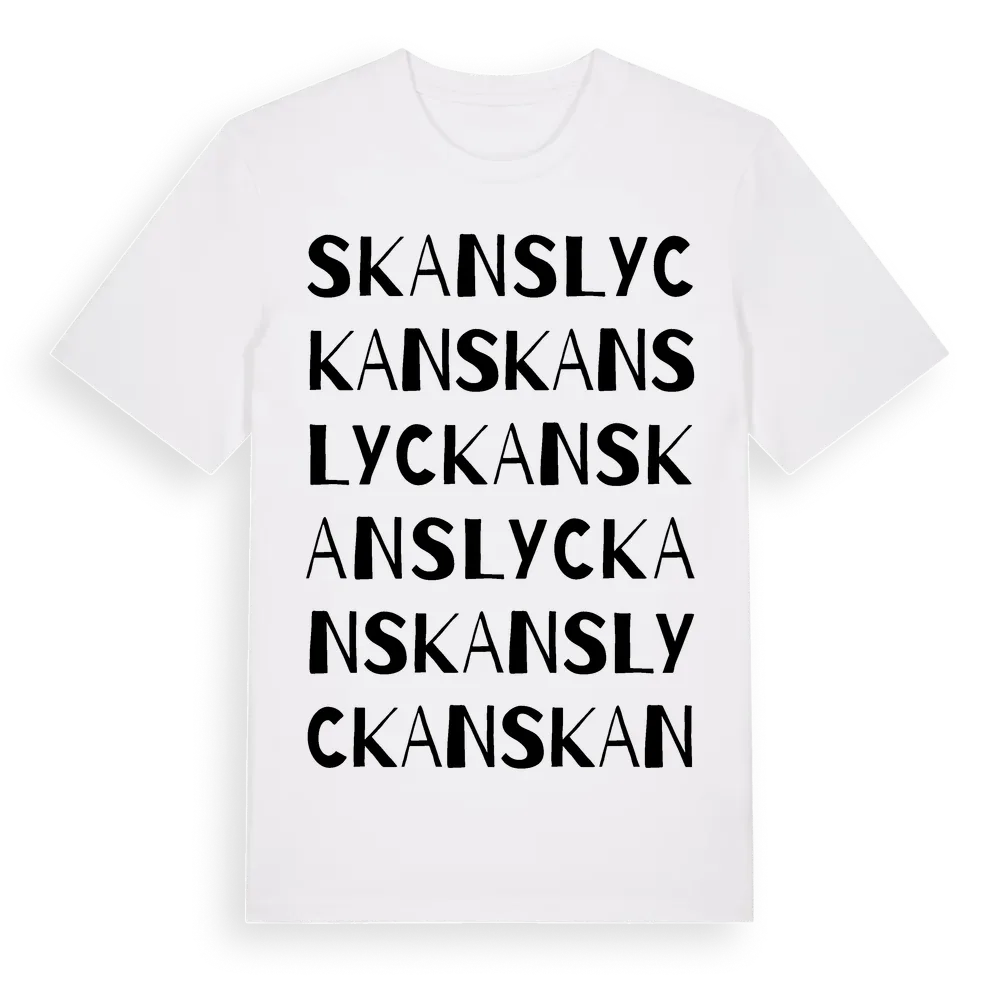 Skanslyckan ordlek t-shirt är inspirerad av Skanslyckan i Hallands län, Sverige. Tröjan är designad för dig som har en speciell koppling till platsen – oavsett om du bor här, har rötterna här eller bara älskar Skanslyckan.