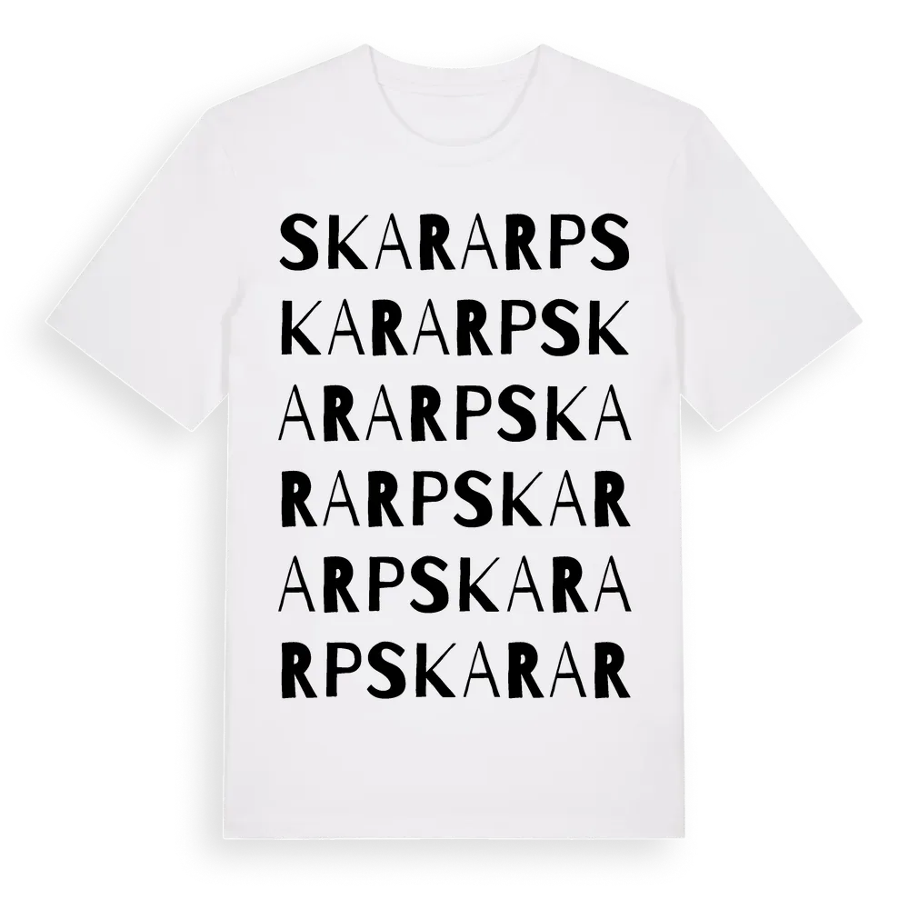En ordlek byggd på Skararps namn. Subtilt och klurig – ett motiv som bara de som verkligen känner platsen fullt ut förstår. Premium bomull, unisex – från Skararp i Hallands län.