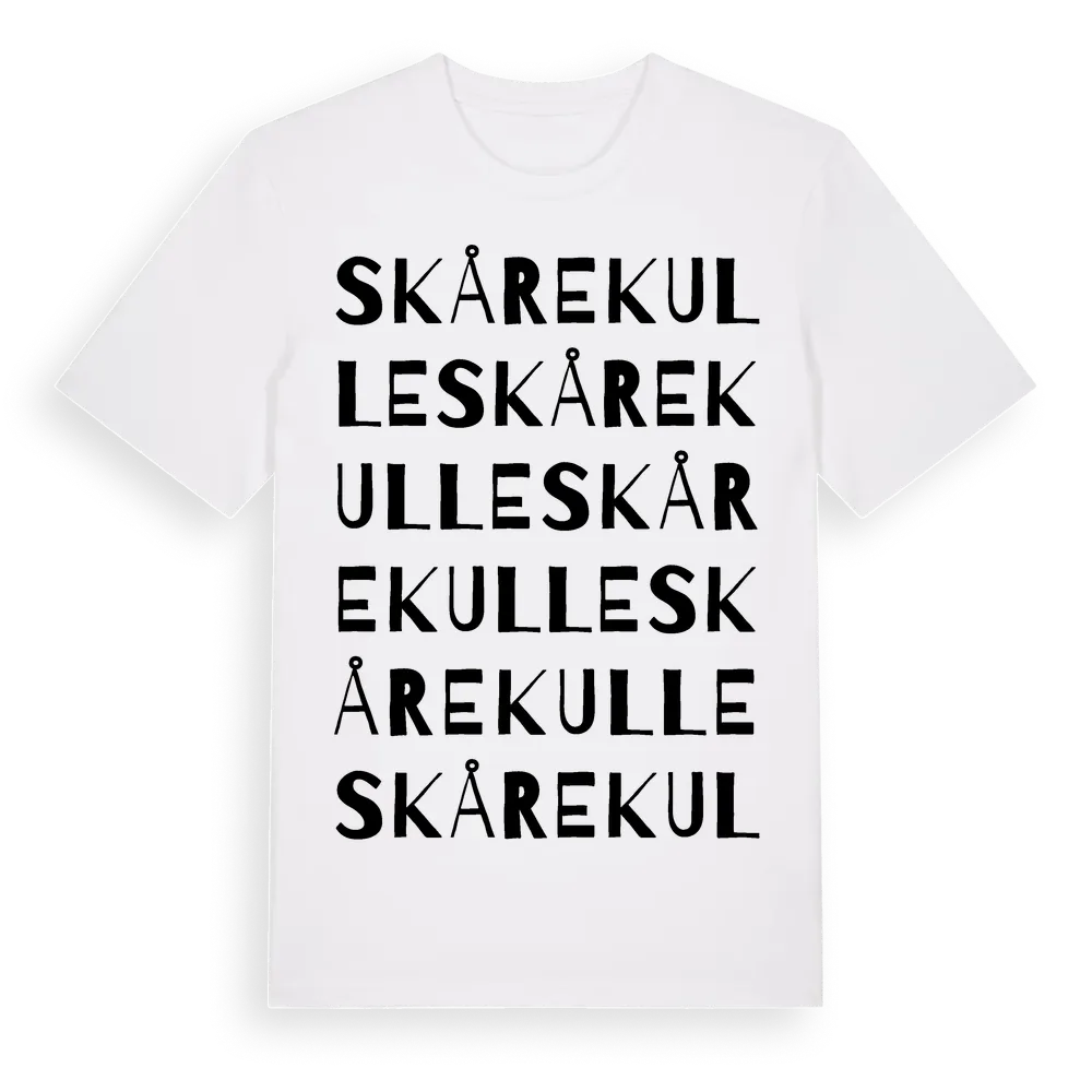 Skårekulle ordlek t-shirt är inspirerad av Skårekulle i Hallands län, Sverige. Tröjan är designad för dig som har en speciell koppling till platsen – oavsett om du bor här, har rötterna här eller bara älskar Skårekulle.