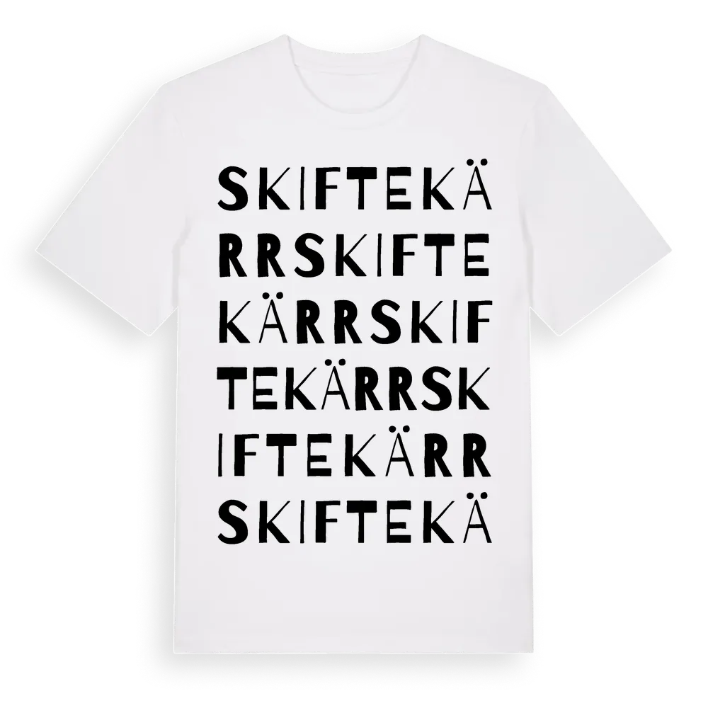 Skiftekärr ordlek t-shirt är inspirerad av Skiftekärr i Hallands län, Sverige. Tröjan är designad för dig som har en speciell koppling till platsen – oavsett om du bor här, har rötterna här eller bara älskar Skiftekärr.