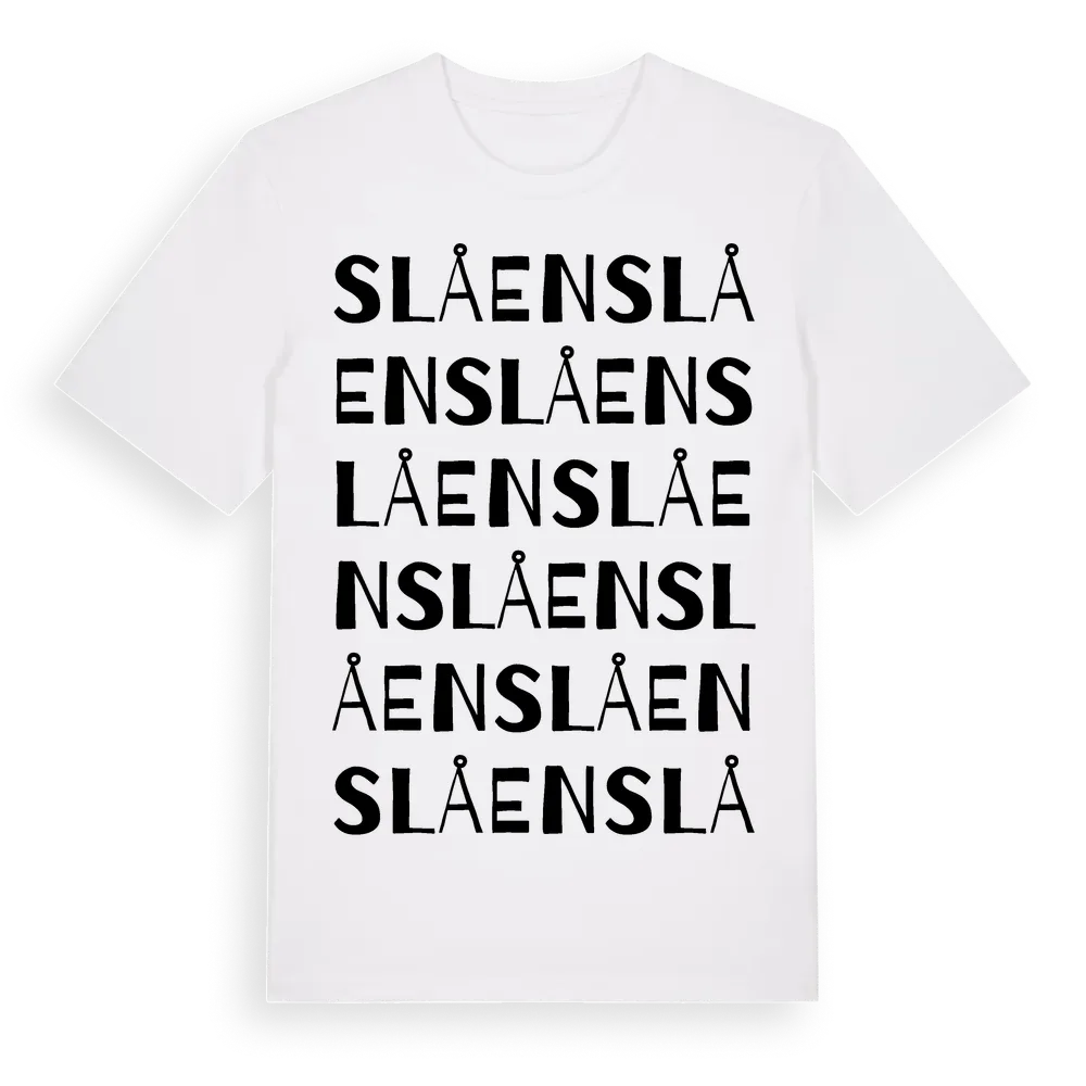 Slåen ordlek t-shirt är inspirerad av Slåen i Hallands län, Sverige. Tröjan är designad för dig som har en speciell koppling till platsen – oavsett om du bor här, har rötterna här eller bara älskar Slåen.