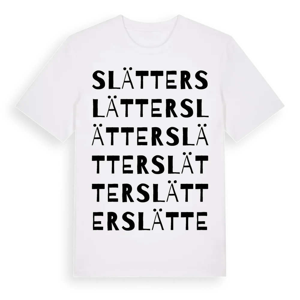 Slätter ordlek t-shirt är inspirerad av Slätter i Hallands län, Sverige. Tröjan är designad för dig som har en speciell koppling till platsen – oavsett om du bor här, har rötterna här eller bara älskar Slätter.