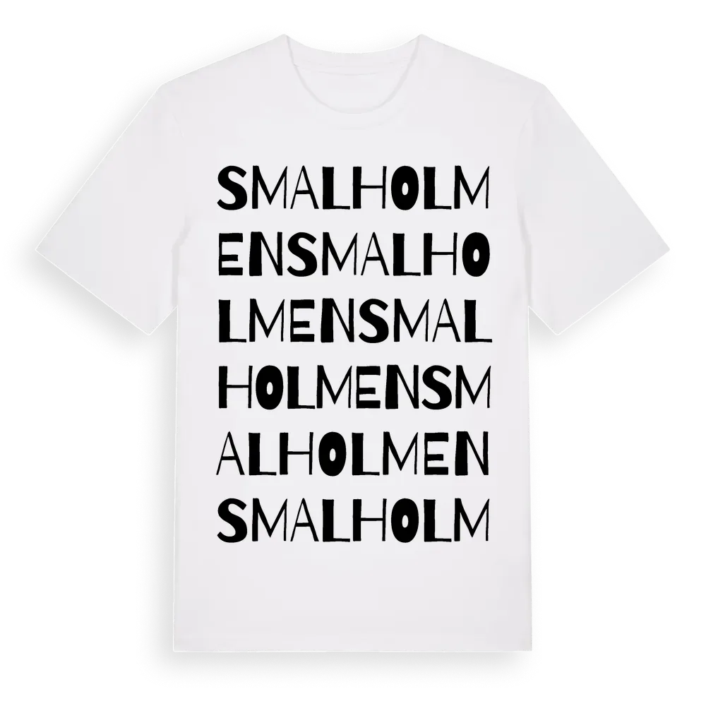 Smalholmen ordlek t-shirt är inspirerad av Smalholmen i Hallands län, Sverige. Tröjan är designad för dig som har en speciell koppling till platsen – oavsett om du bor här, har rötterna här eller bara älskar Smalholmen.