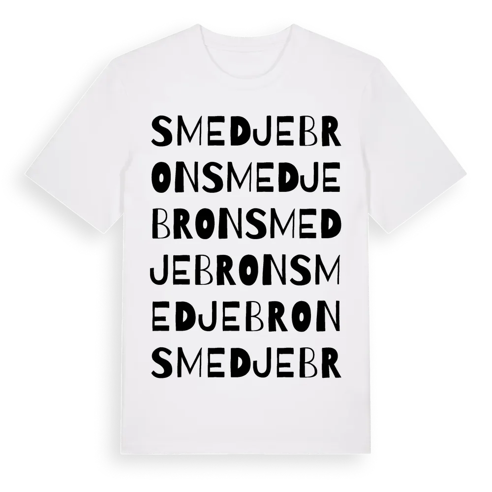 Smedjebron ordlek t-shirt är inspirerad av Smedjebron i Hallands län, Sverige. Tröjan är designad för dig som har en speciell koppling till platsen – oavsett om du bor här, har rötterna här eller bara älskar Smedjebron.