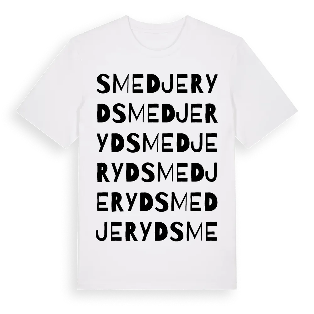 Smedjeryd ordlek t-shirt är inspirerad av Smedjeryd i Hallands län, Sverige. Tröjan är designad för dig som har en speciell koppling till platsen – oavsett om du bor här, har rötterna här eller bara älskar Smedjeryd.