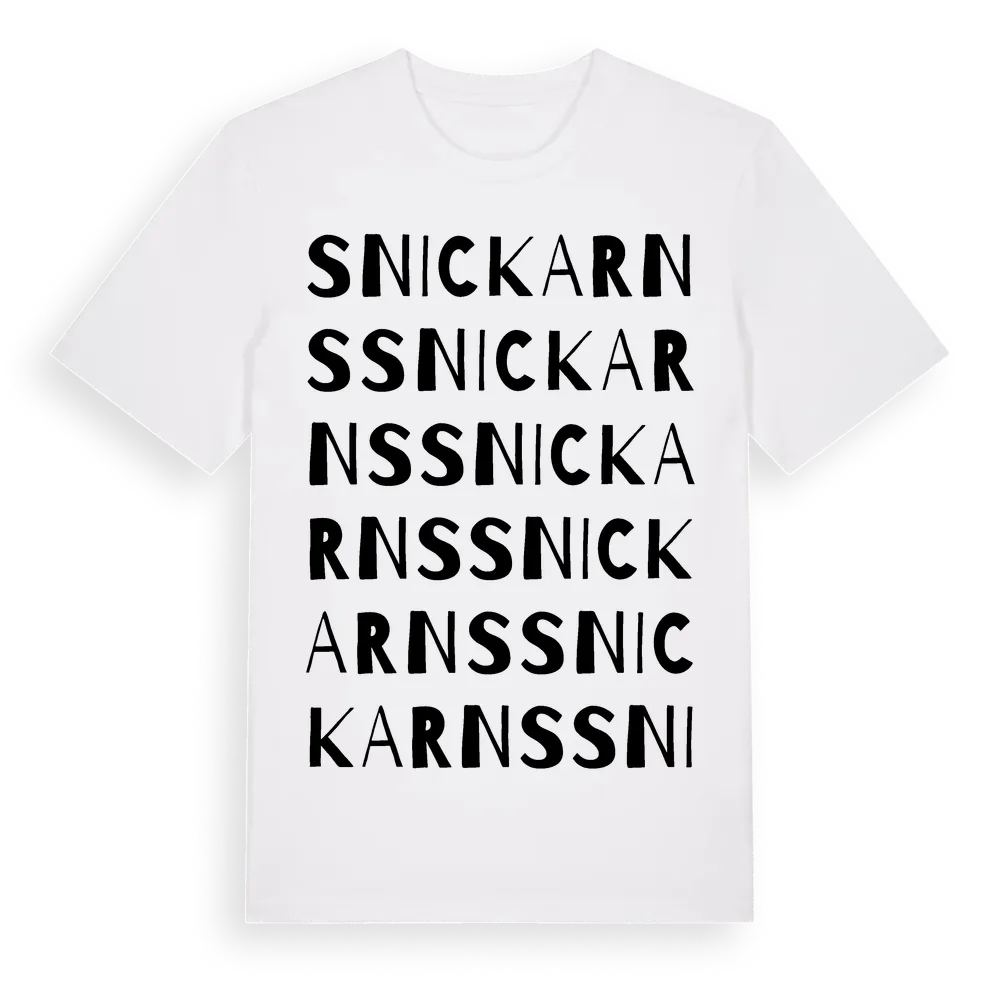 Snickarns ordlek t-shirt är inspirerad av Snickarns i Hallands län, Sverige. Tröjan är designad för dig som har en speciell koppling till platsen – oavsett om du bor här, har rötterna här eller bara älskar Snickarns.