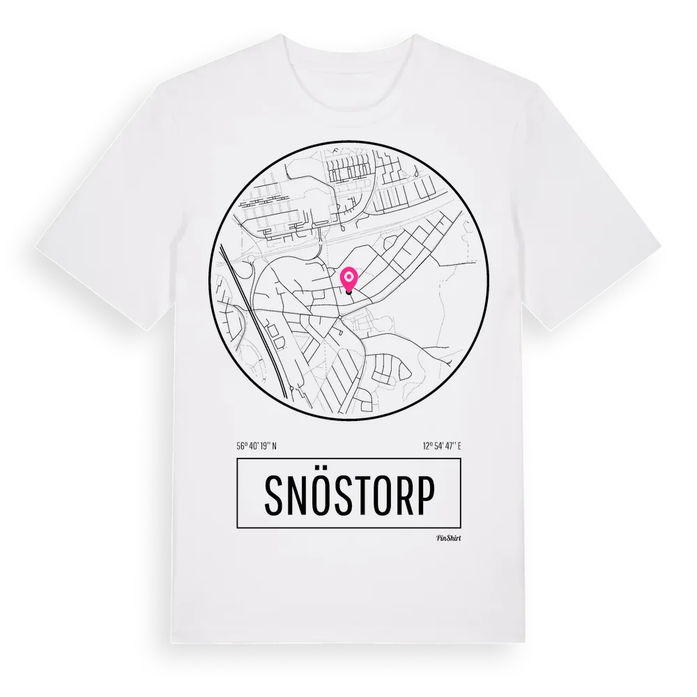 Ett rent, runt tryck med Snöstorps namn. Minimalistiskt och stilrent – perfekt för den som känner platsen utan att skrika det. Premium bomull, unisex – från stadsdelen Snöstorp i Hallands län.