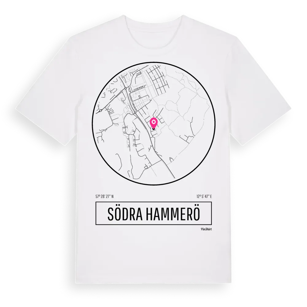 Södra Hammerö t-shirt är inspirerad av stadsdelen Södra Hammerö i Hallands län, Sverige. Tröjan är designad för dig som har en speciell koppling till platsen – oavsett om du bor här, har rötterna här eller bara älskar Södra Hammerö.