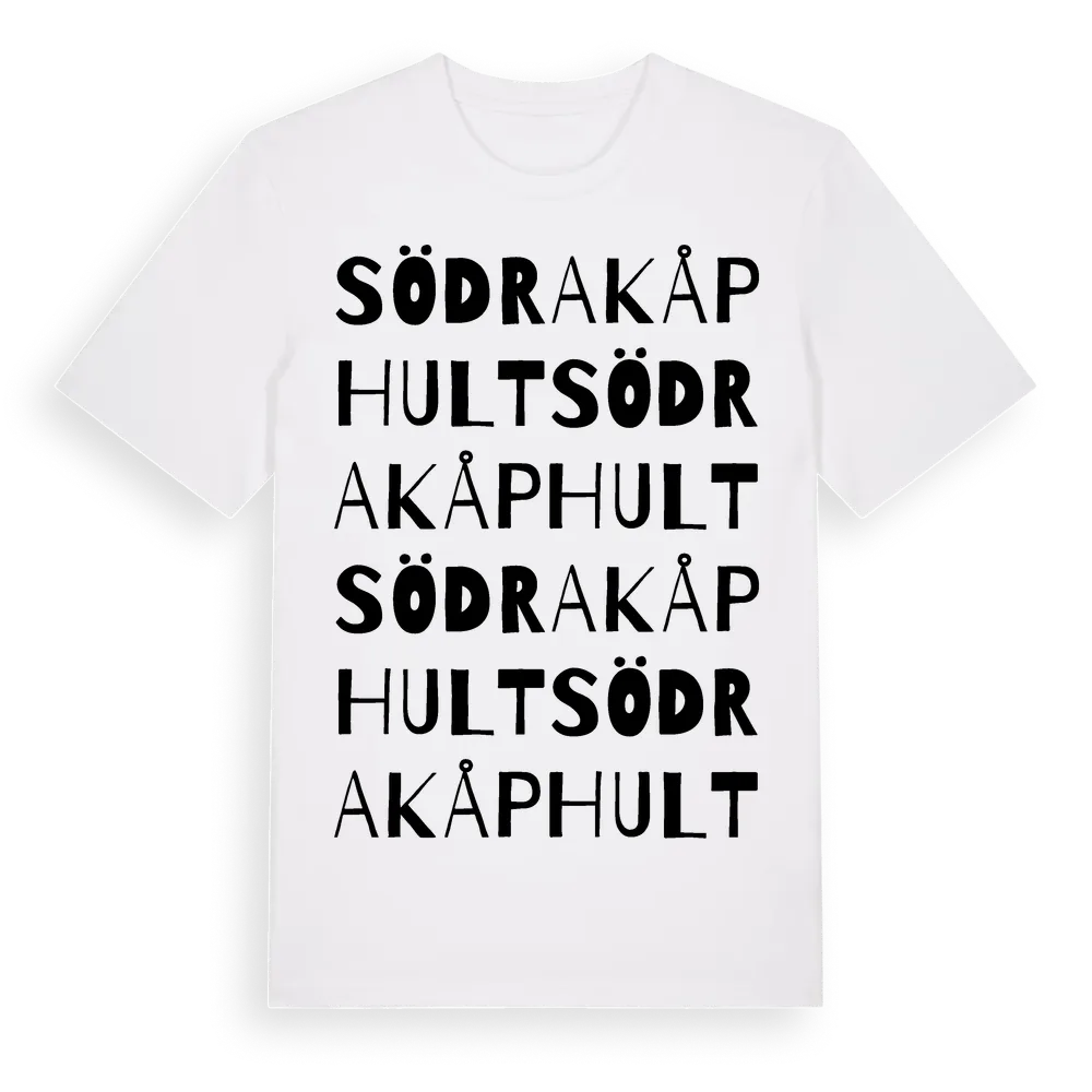 Södra Kåphult ordlek t-shirt är inspirerad av byn Södra Kåphult i Hallands län, Sverige. Tröjan är designad för dig som har en speciell koppling till platsen – oavsett om du bor här, har rötterna här eller bara älskar Södra Kåphult.