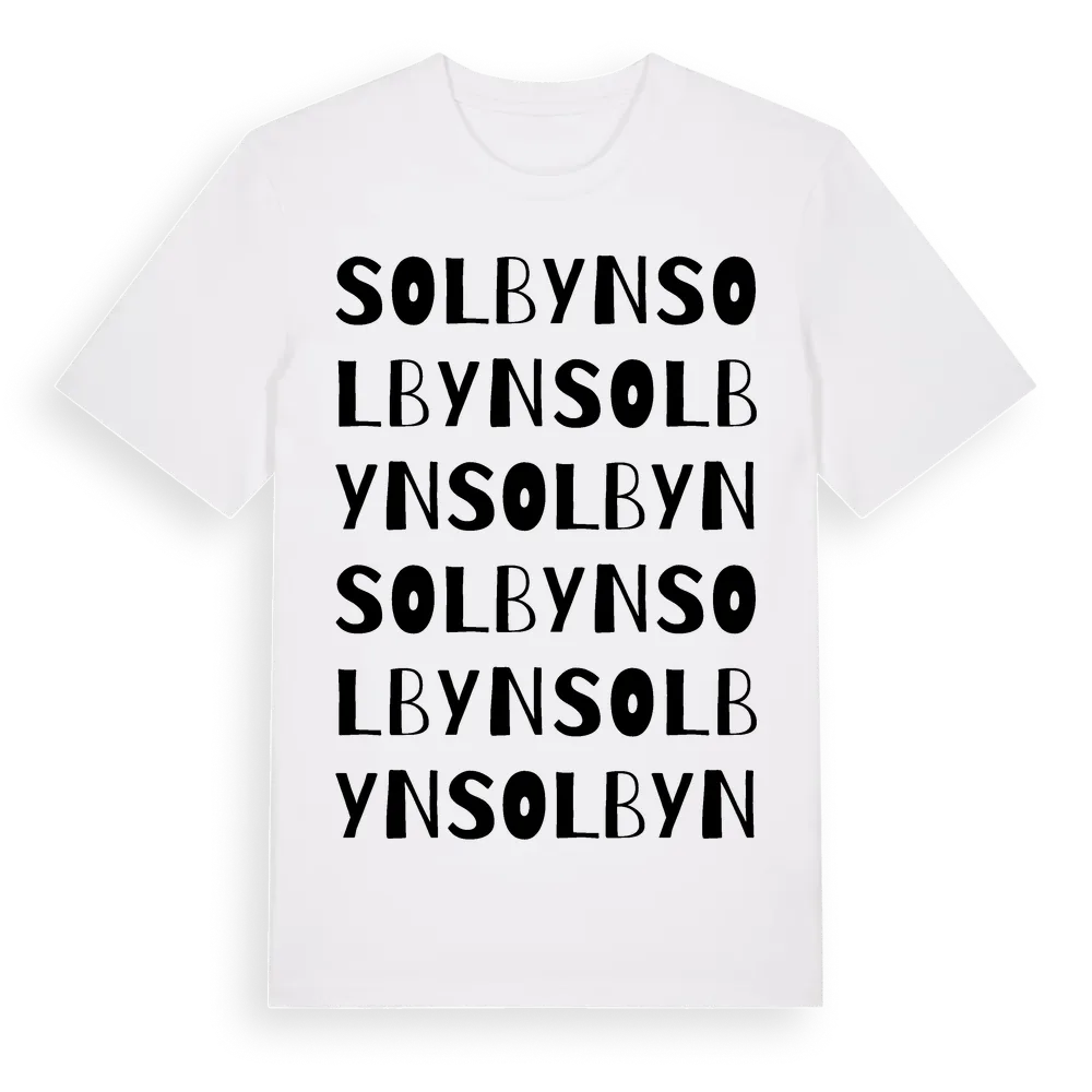Solbyn ordlek t-shirt är inspirerad av stadsdelen Solbyn i Hallands län, Sverige. Tröjan är designad för dig som har en speciell koppling till platsen – oavsett om du bor här, har rötterna här eller bara älskar Solbyn.