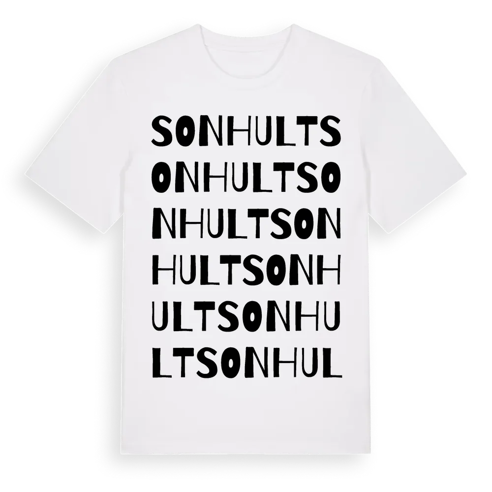 Sonhult ordlek t-shirt är inspirerad av Sonhult i Hallands län, Sverige. Tröjan är designad för dig som har en speciell koppling till platsen – oavsett om du bor här, har rötterna här eller bara älskar Sonhult.