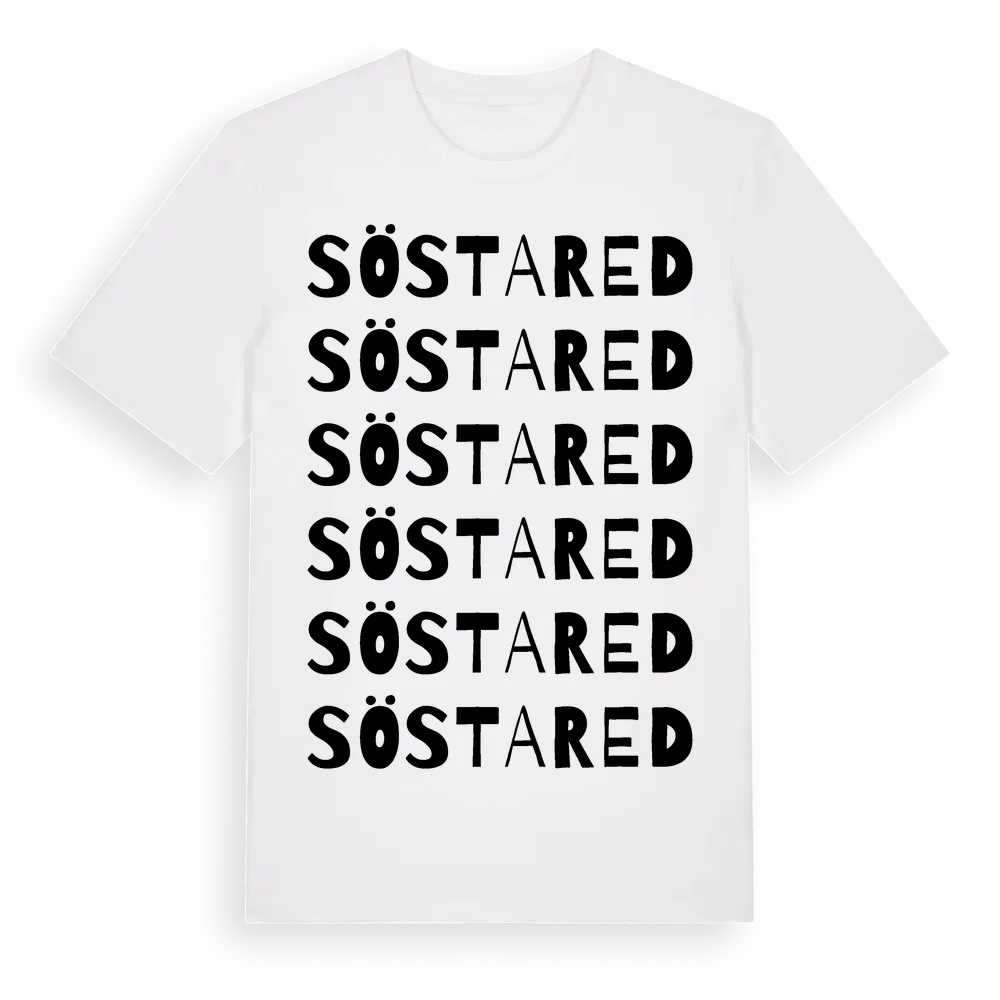 En ordlek byggd på Söstareds namn. Subtilt och klurig – ett motiv som bara de som verkligen känner platsen fullt ut förstår. Premium bomull, unisex – från Söstared i Hallands län.