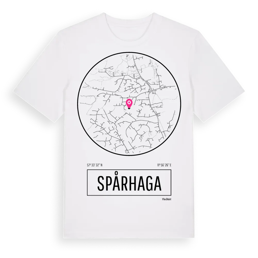 Spårhaga t-shirt är inspirerad av stadsdelen Spårhaga i Hallands län, Sverige. Tröjan är designad för dig som har en speciell koppling till platsen – oavsett om du bor här, har rötterna här eller bara älskar Spårhaga.