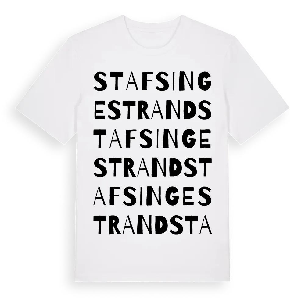 Stafsingestrand ordlek t-shirt är inspirerad av Stafsingestrand i Hallands län, Sverige. Tröjan är designad för dig som har en speciell koppling till platsen – oavsett om du bor här, har rötterna här eller bara älskar Stafsingestrand.