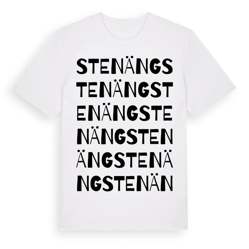 En ordlek byggd på Stenängs namn. Subtilt och klurig – ett motiv som bara de som verkligen känner platsen fullt ut förstår. Premium bomull, unisex – från Stenäng i Hallands län.