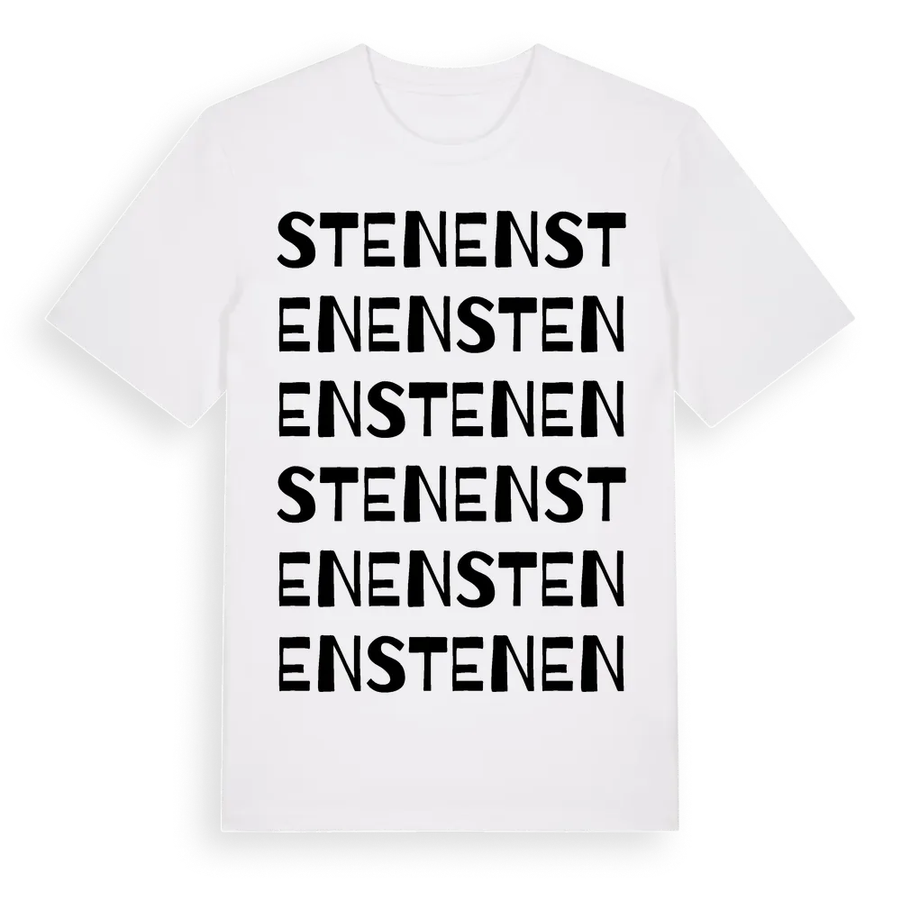 Stenen ordlek t-shirt är inspirerad av stadsdelen Stenen i Hallands län, Sverige. Tröjan är designad för dig som har en speciell koppling till platsen – oavsett om du bor här, har rötterna här eller bara älskar Stenen.