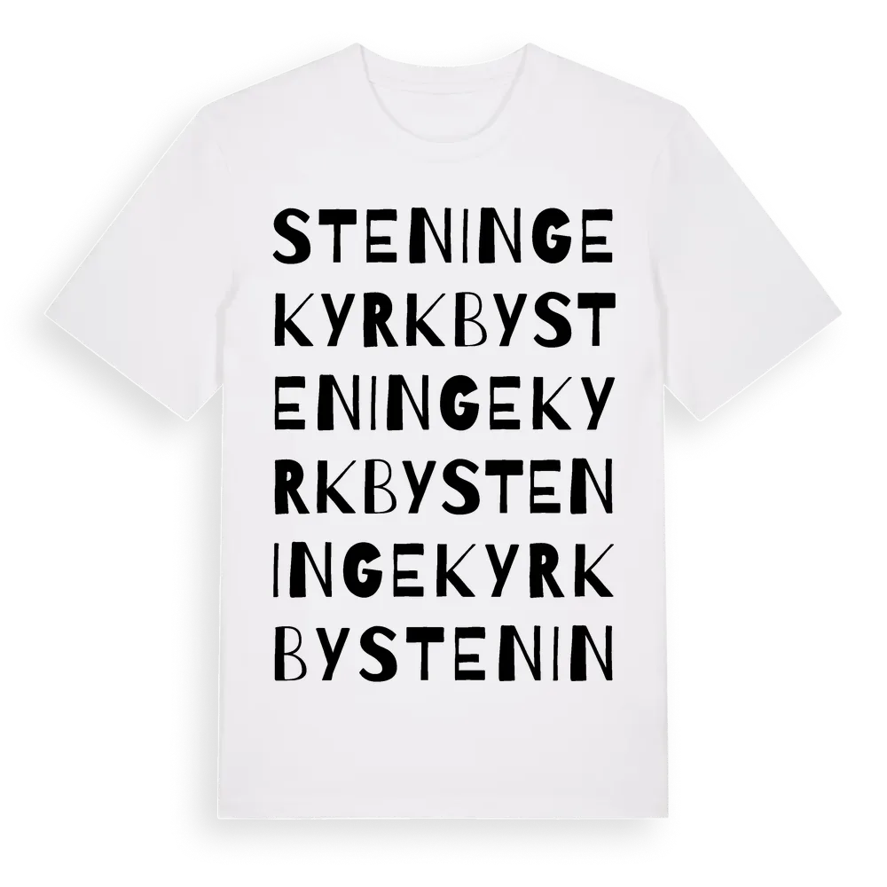 Steninge Kyrkby ordlek t-shirt är inspirerad av byn Steninge Kyrkby i Hallands län, Sverige. Tröjan är designad för dig som har en speciell koppling till platsen – oavsett om du bor här, har rötterna här eller bara älskar Steninge Kyrkby.