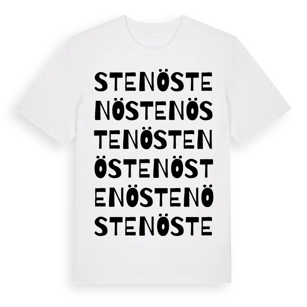 Stenö ordlek t-shirt är inspirerad av Stenö i Hallands län, Sverige. Tröjan är designad för dig som har en speciell koppling till platsen – oavsett om du bor här, har rötterna här eller bara älskar Stenö.