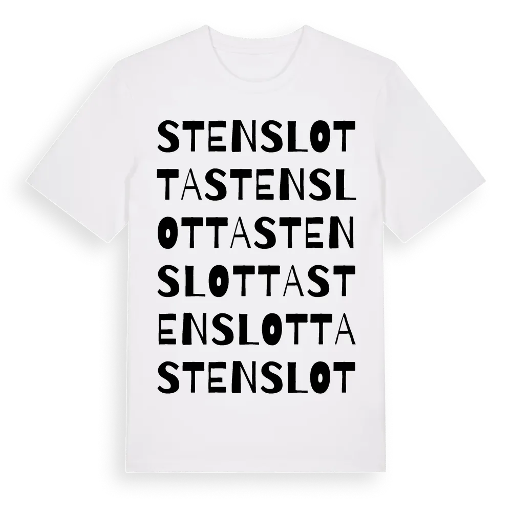 Stenslotta ordlek t-shirt är inspirerad av Stenslotta i Hallands län, Sverige. Tröjan är designad för dig som har en speciell koppling till platsen – oavsett om du bor här, har rötterna här eller bara älskar Stenslotta.