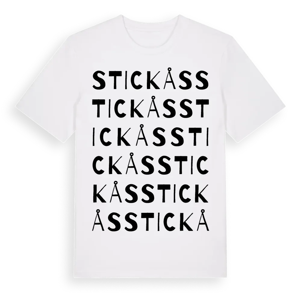 Stickås ordlek t-shirt är inspirerad av Stickås i Hallands län, Sverige. Tröjan är designad för dig som har en speciell koppling till platsen – oavsett om du bor här, har rötterna här eller bara älskar Stickås.