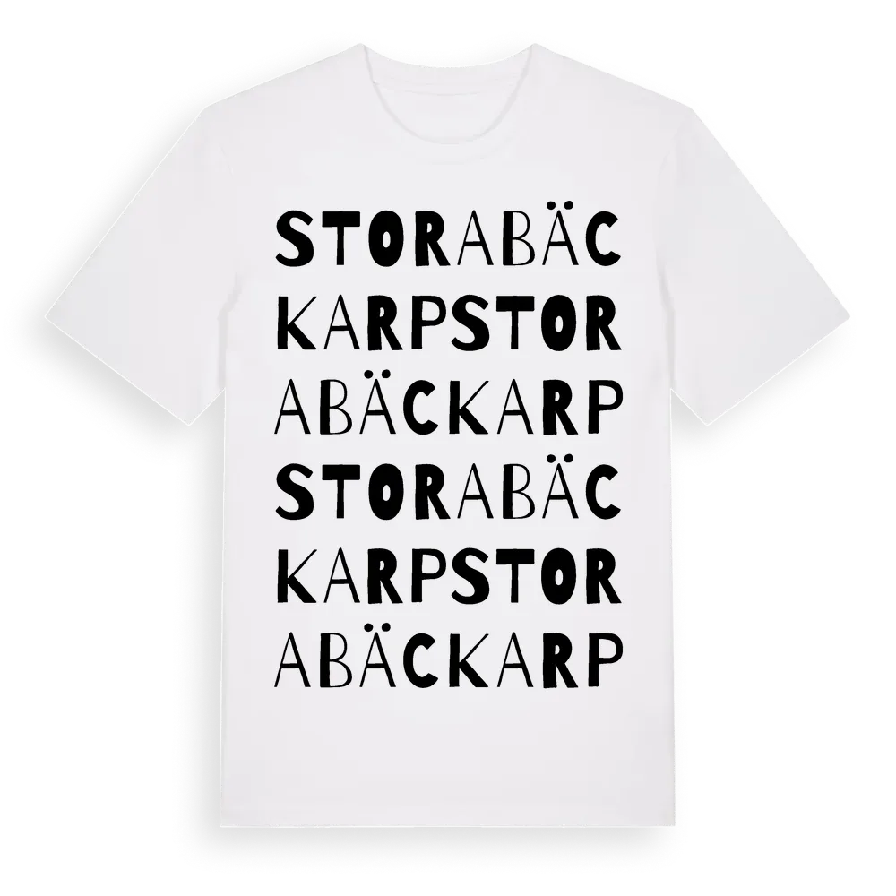Stora Bäckarp ordlek t-shirt är inspirerad av Stora Bäckarp i Hallands län, Sverige. Tröjan är designad för dig som har en speciell koppling till platsen – oavsett om du bor här, har rötterna här eller bara älskar Stora Bäckarp.