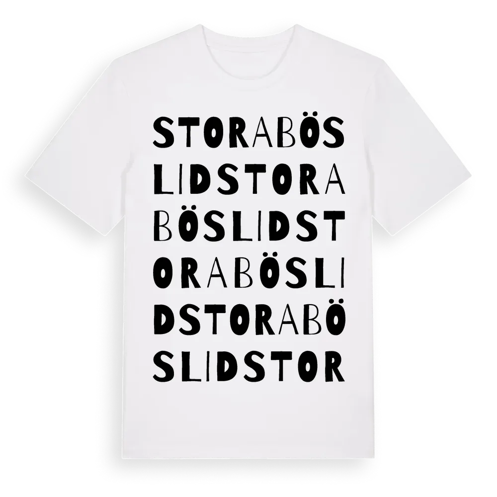 Stora Böslid ordlek t-shirt är inspirerad av Stora Böslid i Hallands län, Sverige. Tröjan är designad för dig som har en speciell koppling till platsen – oavsett om du bor här, har rötterna här eller bara älskar Stora Böslid.