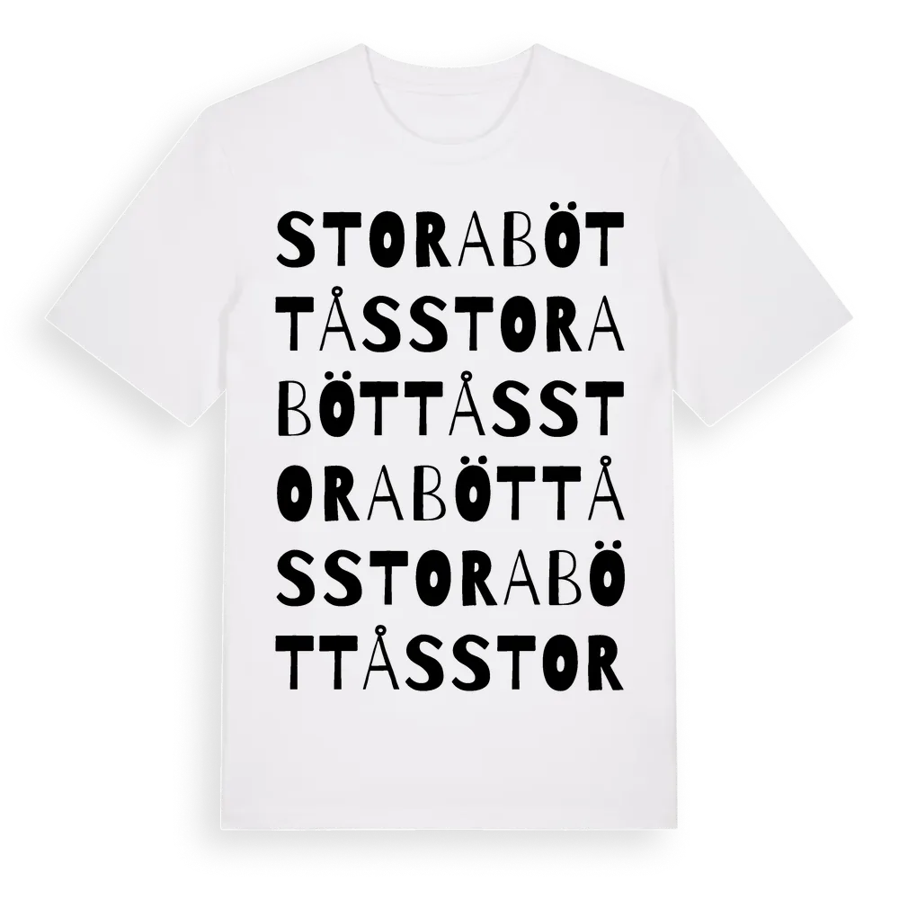 Stora Böttås ordlek t-shirt är inspirerad av Stora Böttås i Hallands län, Sverige. Tröjan är designad för dig som har en speciell koppling till platsen – oavsett om du bor här, har rötterna här eller bara älskar Stora Böttås.