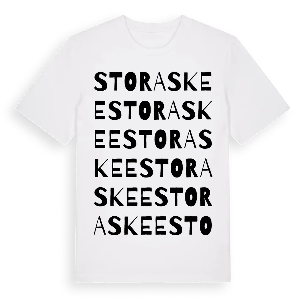 Stora Skee ordlek t-shirt är inspirerad av Stora Skee i Hallands län, Sverige. Tröjan är designad för dig som har en speciell koppling till platsen – oavsett om du bor här, har rötterna här eller bara älskar Stora Skee.