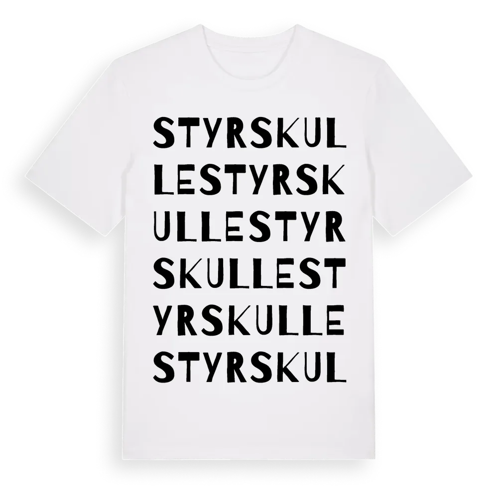 Styrskulle ordlek t-shirt är inspirerad av Styrskulle i Hallands län, Sverige. Tröjan är designad för dig som har en speciell koppling till platsen – oavsett om du bor här, har rötterna här eller bara älskar Styrskulle.