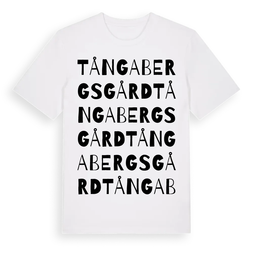 Tångabergs Gård ordlek t-shirt är inspirerad av Tångabergs Gård i Hallands län, Sverige. Tröjan är designad för dig som har en speciell koppling till platsen – oavsett om du bor här, har rötterna här eller bara älskar Tångabergs Gård.