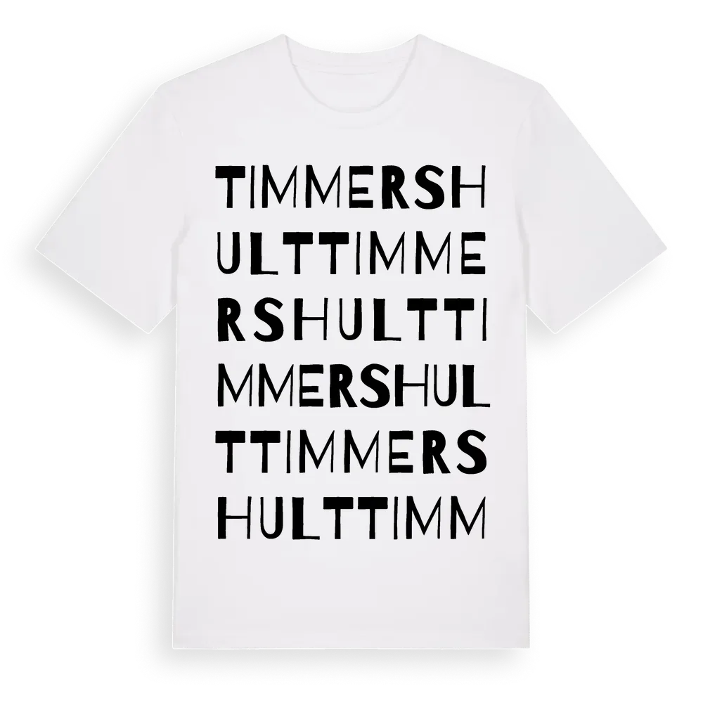 Timmershult ordlek t-shirt är inspirerad av Timmershult i Hallands län, Sverige. Tröjan är designad för dig som har en speciell koppling till platsen – oavsett om du bor här, har rötterna här eller bara älskar Timmershult.