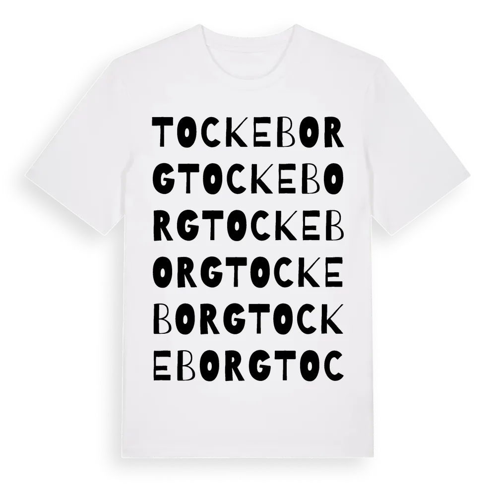 Tockeborg ordlek t-shirt är inspirerad av Tockeborg i Hallands län, Sverige. Tröjan är designad för dig som har en speciell koppling till platsen – oavsett om du bor här, har rötterna här eller bara älskar Tockeborg.